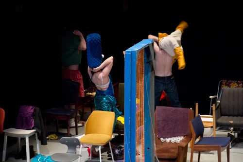 “Enriched by Molly O’Cathain’s sun-scorched, minimalist set and wacky costumes, superbly illuminated by John Gunning’s lights, Hothouse is an almost operatic exercise in theatrical control. The design works like a heatwave hallucination: surfaces shimmer, fabrics clash, and colours flare until they collapse into something near beauty. O’Cathain’s design evokes both the utopian optimism of 1970s futurism and the exhaustion of a planet pushed to its limit.” — The Arts Review, Dublin Fringe Festival 2023: Hothouse